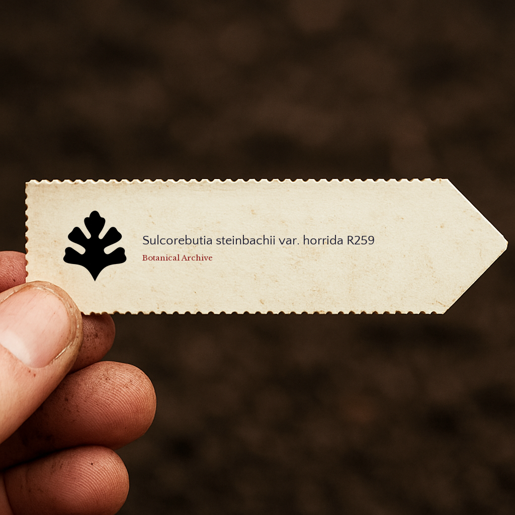 Sulcorebutia steinbachii var. horrida es un resistente cactus sudamericano que prospera en condiciones alpinas. La variedad horrida es especialmente reconocida por su robusta disposición de espinas y su vibrante floración. La llaman un cactus de coleccionista debido a su rareza y morfología única. Su cuerpo pequeño y esférico junto con sus espinas afiladas crean una silueta atractiva y protectora.
