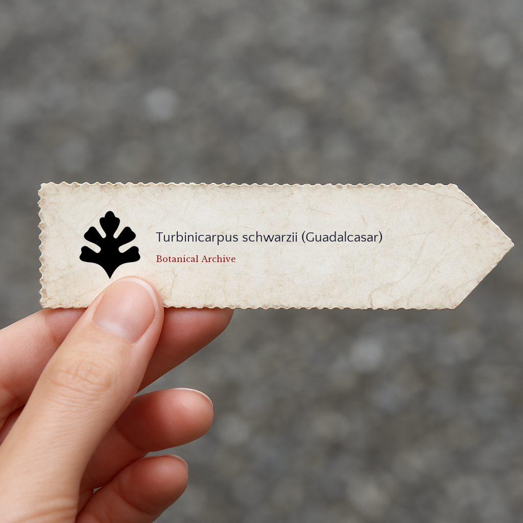 La variété Turbinicarpus schwarzii Guadalcasar est particulièrement prisée pour son apparence subtile mais saisissante. Il pousse lentement mais régulièrement, formant des rosettes serrées qui renforcent son attrait ornemental. Les jardiniers apprécient le cactus schwarzii pour sa résilience et sa forme distinctive. Ce cactus de Guanajuato reflète la beauté accidentée de son habitat naturel dans le centre du Mexique.