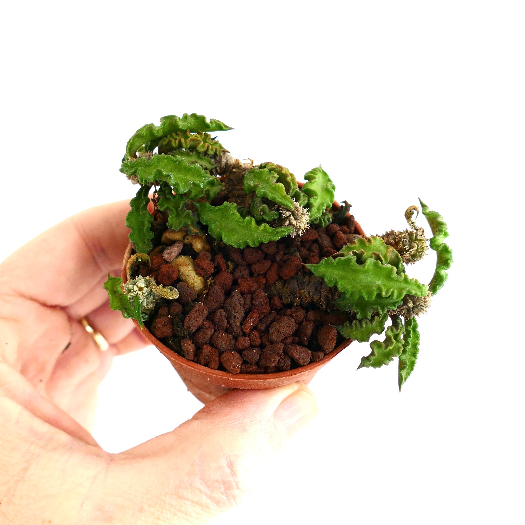 Euphorbia decaryi stands out as a captivating succulent native to Madagascar. This rare Euphorbia species features a compact, shrubby form with distinctive spiny stems that create an intriguing texture. Gardeners and collectors value its unique appearance and the way it thrives in arid environments, making it a remarkable addition to any succulent collection. Its endemic status adds to its allure and botanical significance.