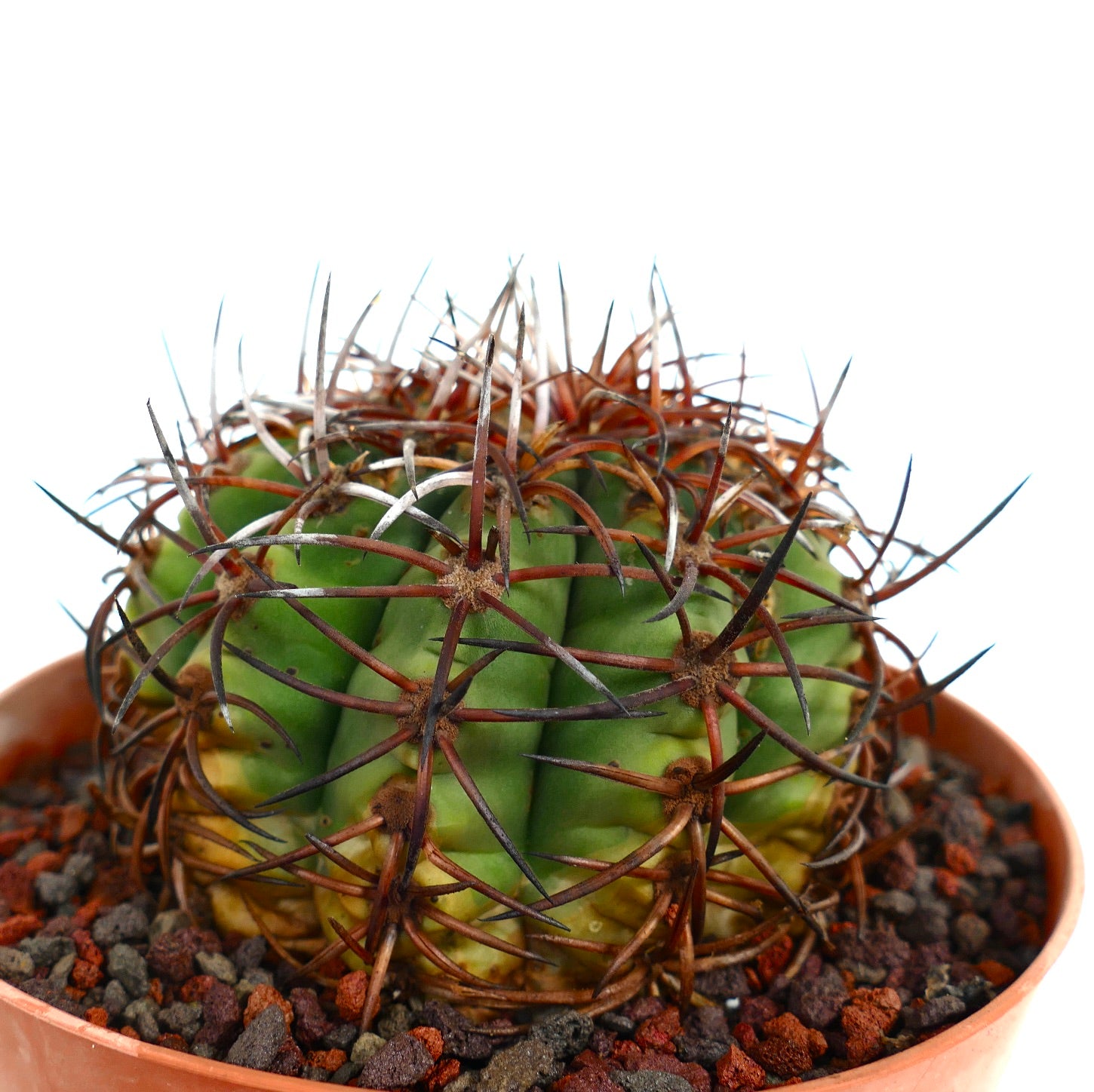 Gymnocalycium weissianum is a striking globular cactus native to South America. This unique species captivates collectors with its rounded, compact shape and smooth ribs. People often call it the Chin Cactus because of its distinctive appearance. Its subtle green body contrasts beautifully with the spines, making it an ornamental gem in any collection.