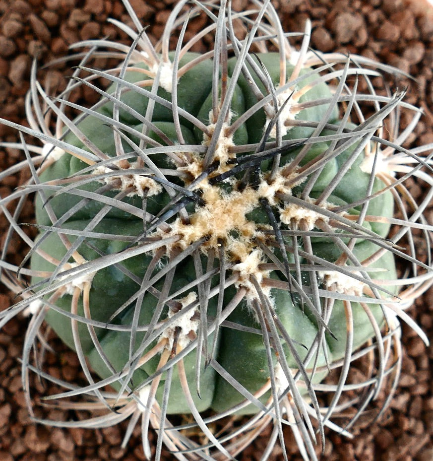 Gymnocalycium spegazzinii stands out as a truly unique and rare cactus specimen. This individual boasts pectinated spines that create a striking, comb-like pattern across its surface. Native to South America, this Argentine cactus captivates collectors with its compact form and robust structure. Its distinctive spines give it an ornamental appeal that few other Gymnocalycium species can match.