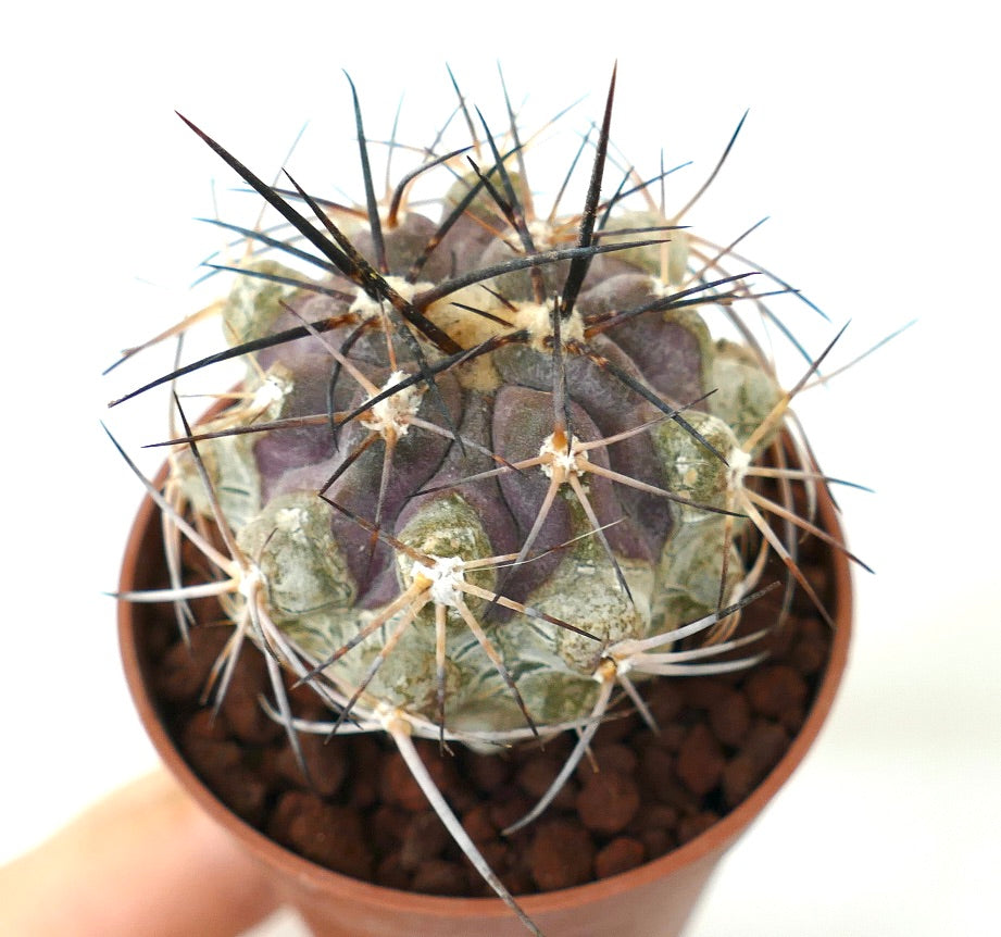 Copiapoa atacamensis stands out as a truly unique succulent, hailing from the arid Atacama Desert. This Botija Valley form specimen captures the essence of this harsh environment with its striking, globular shape and dense, spiny texture. Collectors prize this Chilean cactus for its exceptional rarity and distinct appearance, which showcases the natural adaptations of desert flora. Its rugged, compact form adds an exclusive touch to any collection.