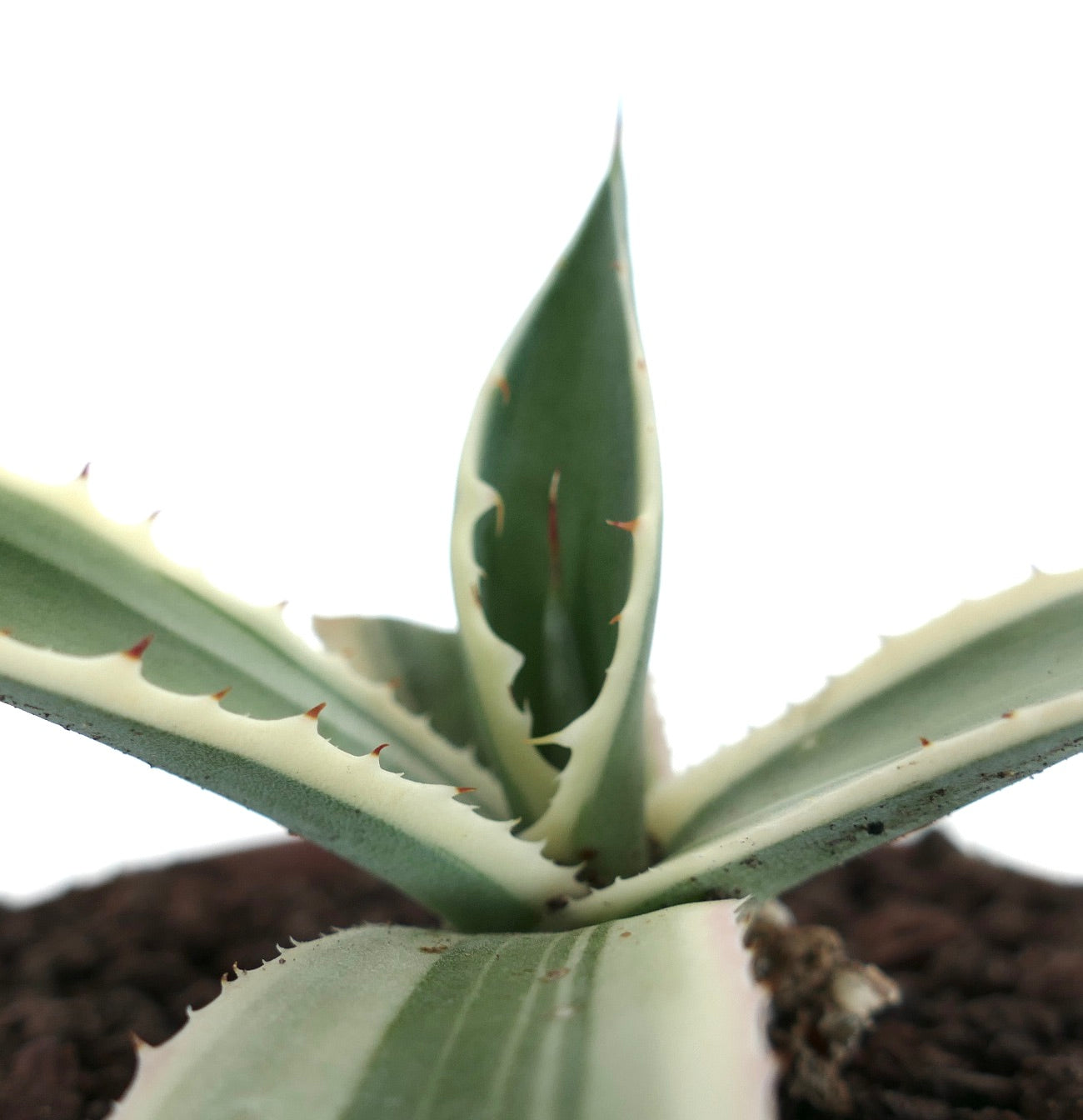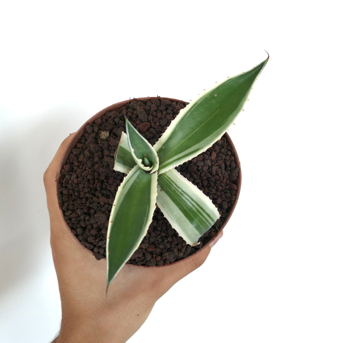 Agave americana Marginata White-Yellow Cream Variegated stands out with its striking foliage. This variegated succulent features broad, fleshy leaves edged in creamy white and yellow tones. People often call it the American agave or Century plant because of its impressive size and longevity. Its bold leaf margins create a vivid contrast that brightens any garden or collection.