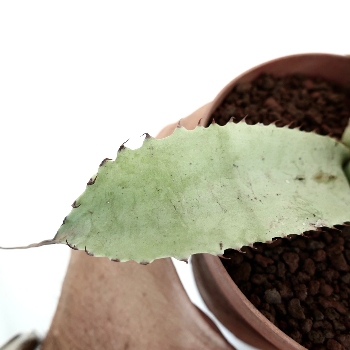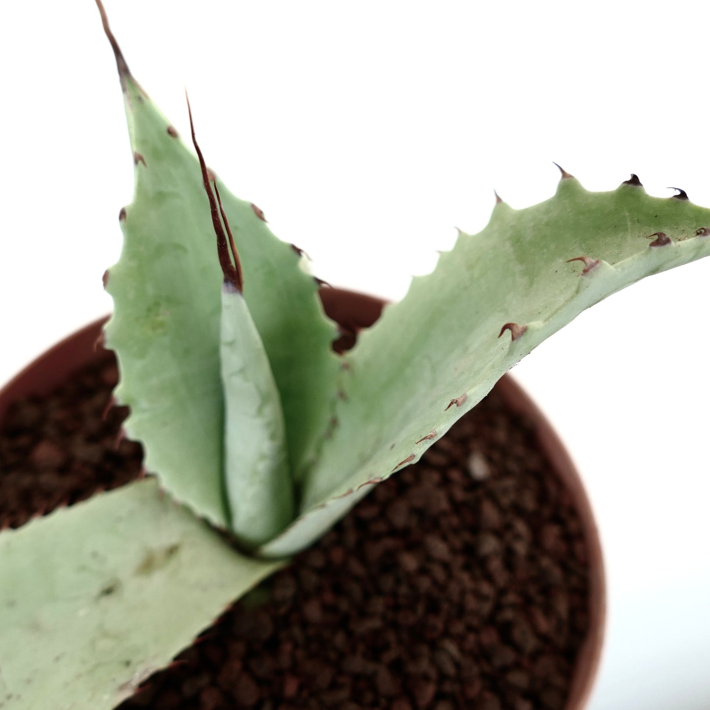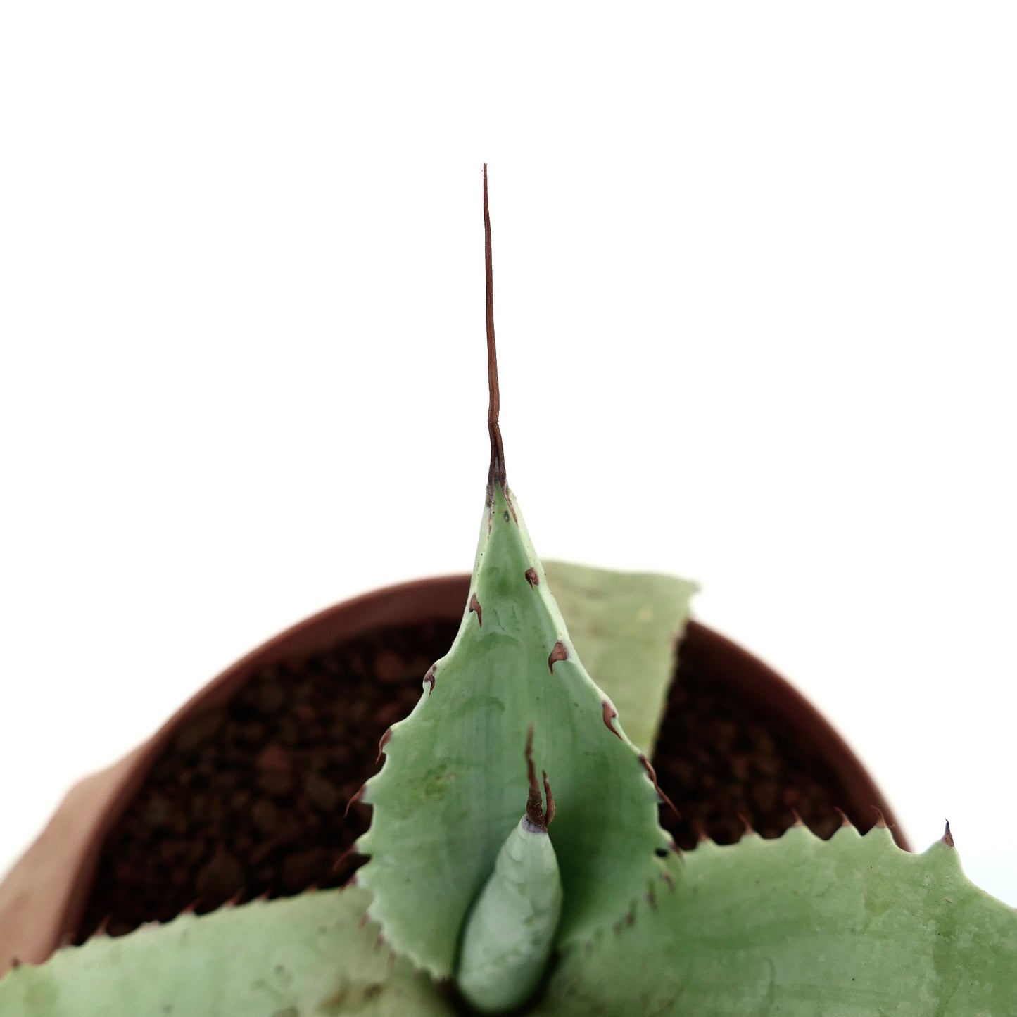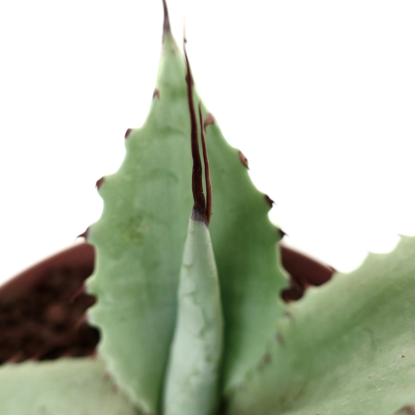 Agave cerulata X eborispina is a captivating hybrid agave renowned for its stunning rosette of blue-gray leaves. The leaves are elongated, thick, and rigid, featuring fine marginal teeth and a sharp terminal spine. This hybrid blends the elegant, slender leaves of A. cerulata with the densely toothed edges of A. erborispina, creating a striking visual effect. It can grow up to 3 feet tall and wide, making it a dramatic addition to any succulent garden or desert landscape. Known for its drought tolerance and resilience, this agave is perfect for xeriscaping and low-maintenance gardening.