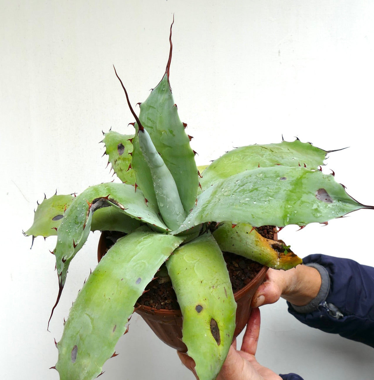Gardeners and collectors prize this Agave eborispina X bovicornuta hybrid for its rarity and striking appearance. The plant's unique combination of characteristics from Agave cerulata and related species makes it a valuable addition to any collection. Its bold form and distinctive leaf structure ensure it stands out in any setting, offering both botanical interest and ornamental beauty.