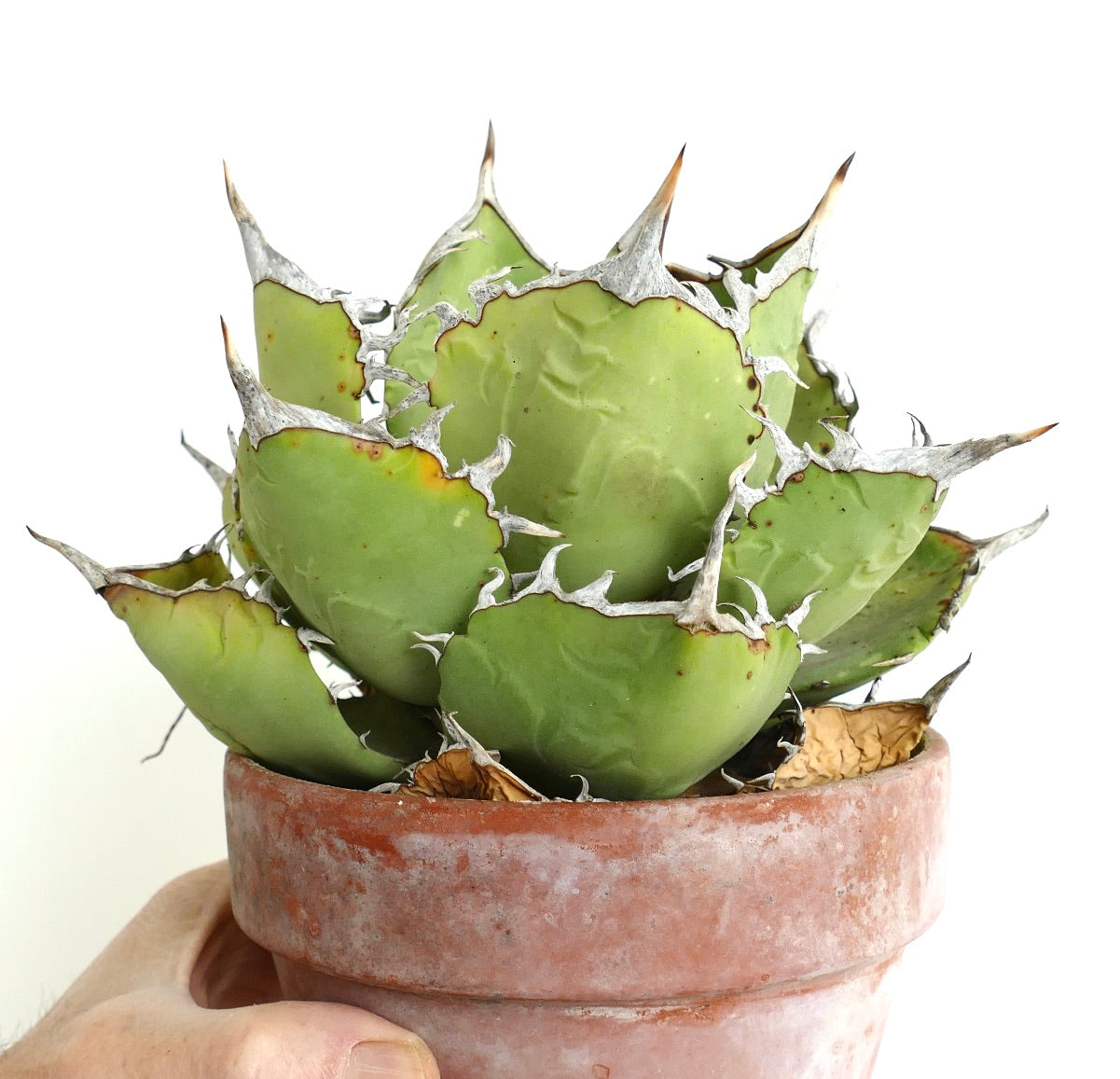 Agave oteroi stands out as a rare and captivating succulent native to the Chihuahuan Desert. This collector Agave draws attention with its robust rosette of thick, blue-green leaves edged with sharp spines. People admire its wild charm and natural form, which make it a prized specimen among enthusiasts. The Otero Agave showcases nature's resilience in arid environments.