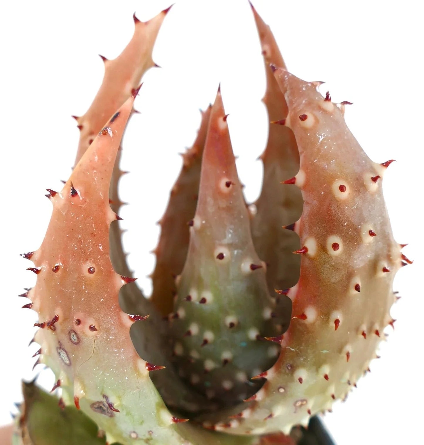The Aloe aculeata var. crousiana is a robust, stemless succulent with a striking rosette of thick, fleshy leaves covered in sharp, reddish spines. This variety closely resembles Aloe aculeata but often features more pronounced spines and a slightly more compact growth habit. Its bluish-green leaves may develop red or purple hues under stress, enhancing its ornamental appeal. In late winter or early spring, it produces tall, unbranched flower spikes topped with bright orange or yellow tubular flowers, attracting pollinators. Native to South Africa, this hardy, drought-resistant aloe thrives in rocky and arid landscapes.