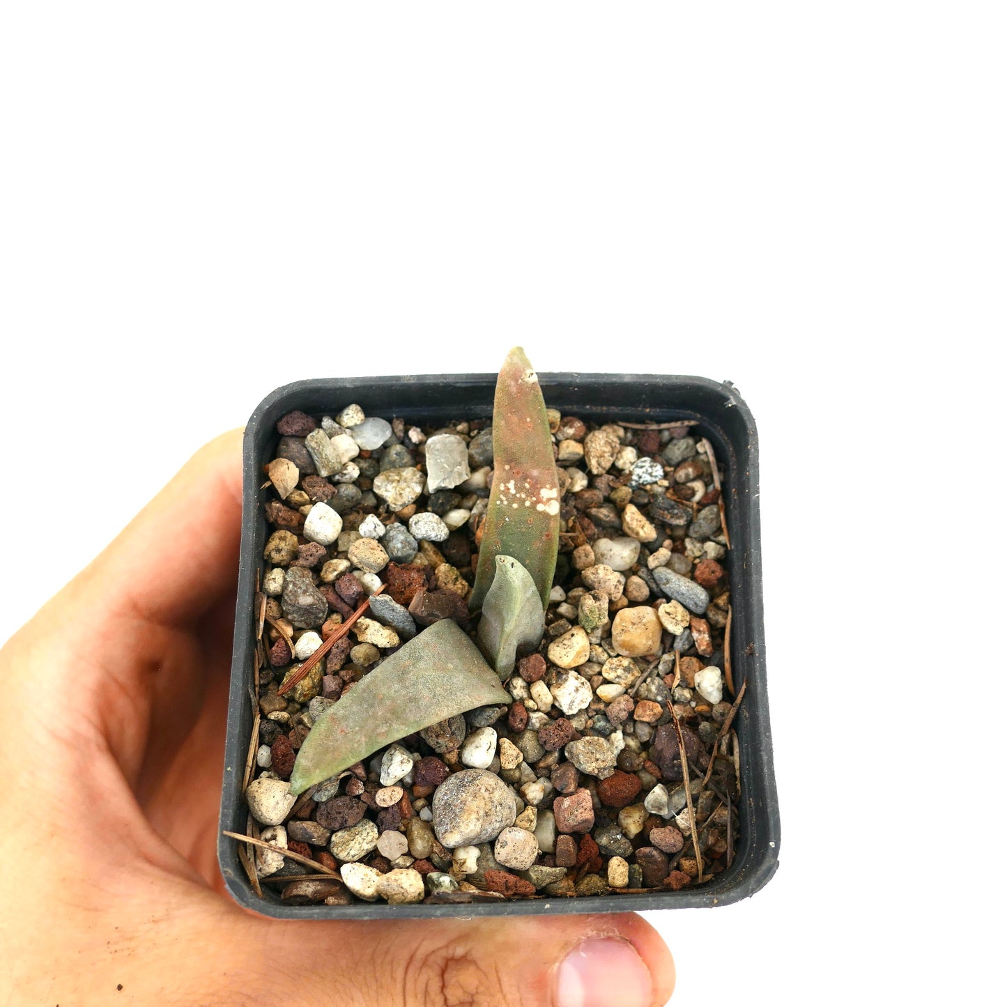 Ariocarpus retusus form longituberosus is a rare and highly sought-after cactus known for its distinctive, tuberculate form and unique appearance. Unlike typical cacti, this species lacks spines and instead features fleshy, triangular tubercules that are elongated in this form, creating a striking geometric pattern. The tubercules are a muted green or grayish-green, blending seamlessly into the arid environments it calls home. In autumn, it produces stunning white to pinkish flowers that emerge from the center of the plant, offering a beautiful contrast to its rugged form. Ariocarpus retusus is prized among collectors for its slow growth and unique beauty.