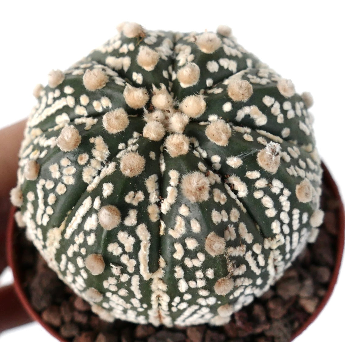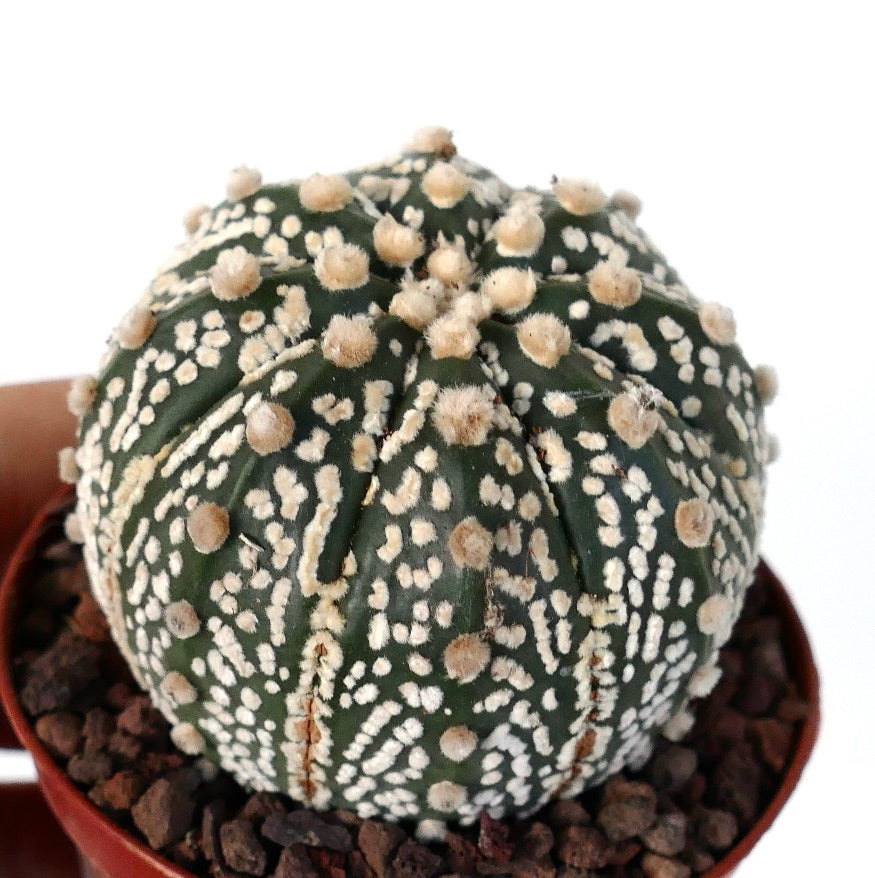 Astrophytum asterias is a captivating star-shaped cactus native to Mexico. This Hybrid Astrophytum asterias combines the unique traits of Astrophytum asterias OIBBO and Astrophytum asterias SUPERKABUTO, making it a rare cacti hybrid prized by collectors. Its flattened, round body resembles a sea urchin cactus with distinct ribs and small white speckles that enhance its ornamental appeal.