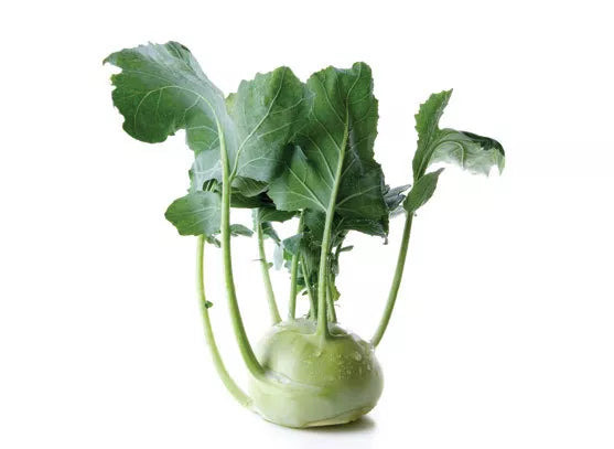 The Vienna Kohlrabi White is a classic heirloom kohlrabi variety, known for its pale green to creamy-white skin and crisp, tender flesh. The round, bulbous stem forms just above the soil, reaching about 3-4 inches in diameter. The flesh inside is sweet, mild, and juicy, with a subtle nutty flavor that is delicious when eaten raw in salads or cooked in a variety of dishes. Its leaves are also edible and can be prepared like greens. This variety is fast-growing and thrives in cooler seasons, making it a perfect choice for spring and fall planting, with its smooth bulbs adding a fresh, delicate taste to your garden.