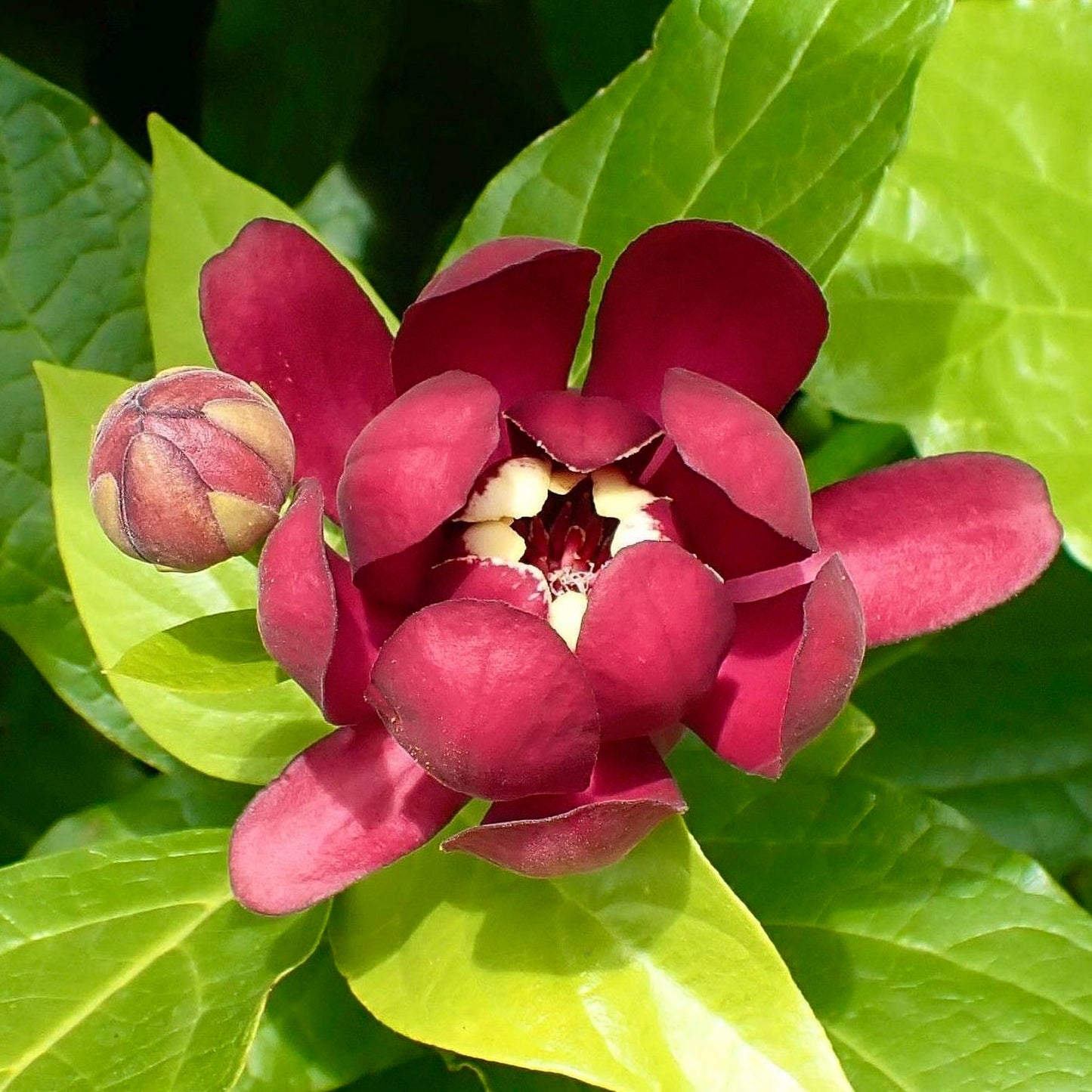 The Calycanthus displays rich, deep-colored blooms that emerge in spring and early summer. These flowers have a distinct spicy scent, which is why people often call it Sweet shrub. Its glossy green leaves turn attractive shades in fall, enhancing its seasonal interest. Overall, this plant combines fragrance and floral charm effectively in garden settings.