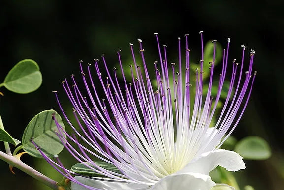 The Cappero Napoletano (Neapolitan Caper) is a traditional Mediterranean plant known for its delicate flower buds and aromatic flavor. The dark green leaves are oval and leathery, while the flower buds—which are harvested and preserved—are small, round, and firm. When left to bloom, the large white to pinkish flowers feature long purple stamens, creating a striking display against the dense foliage. The buds have a tangy, slightly spicy flavor, making them perfect for culinary use in salads, pasta dishes, and sauces. The Cappero Napoletano thrives in rocky soils and coastal environments, making it ideal for warm, dry climates.