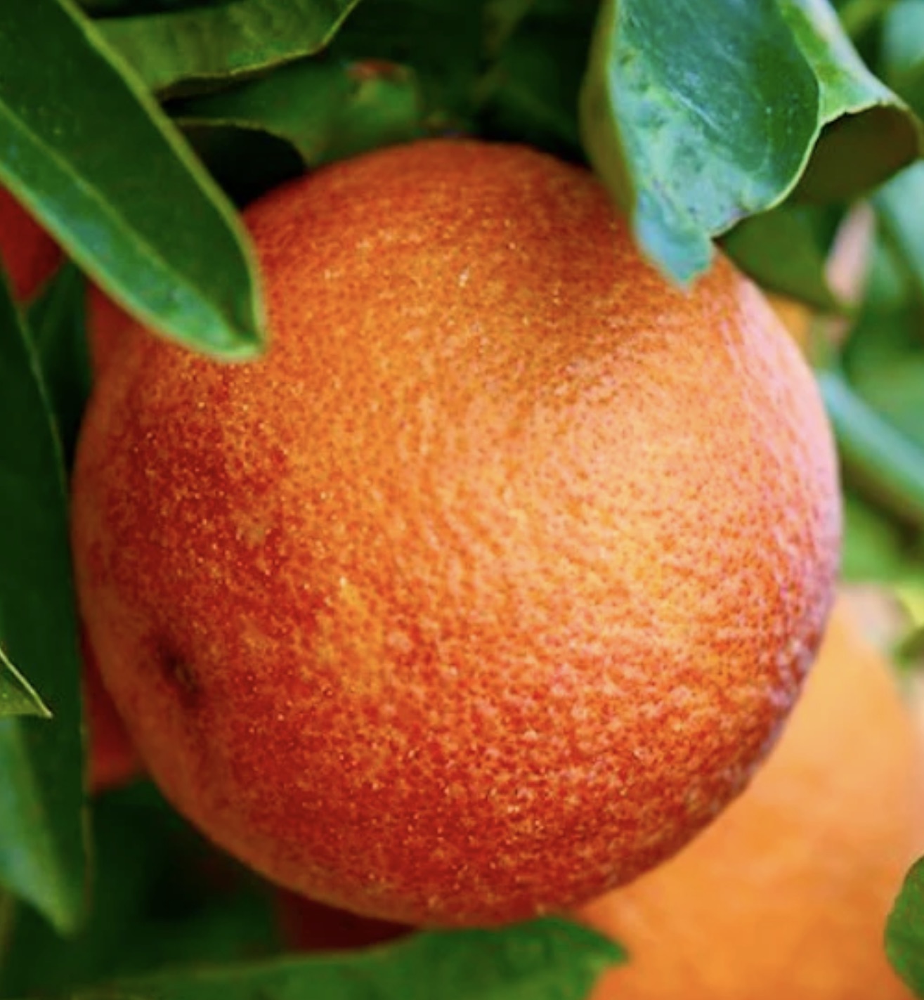 Citrus sinensis cv Moro boasts glossy green leaves that provide a vibrant backdrop to its stunning fruit. The peel shows a characteristic dark blush, making the fruit highly ornamental in addition to its culinary uses. This orange fruit cultivar also features a compact and bushy growth habit, ideal for decorative purposes in gardens and patios. Its rare and eye-catching color adds visual interest throughout the fruiting season.
