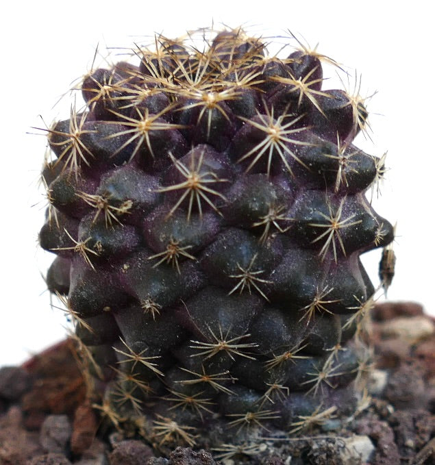 Appearance: Copiapoa tenuissima is a generally small-sized plant with spherical or cylindrical stems that can reach a maximum height of about 10-15 centimeters. The shape and size can vary depending on the plant's age and environmental conditions.