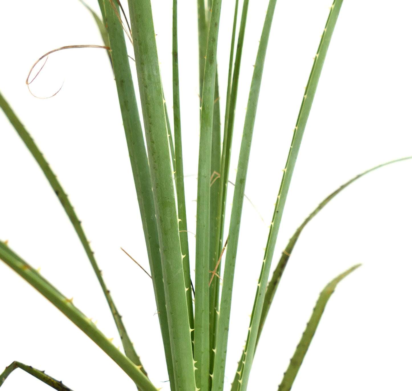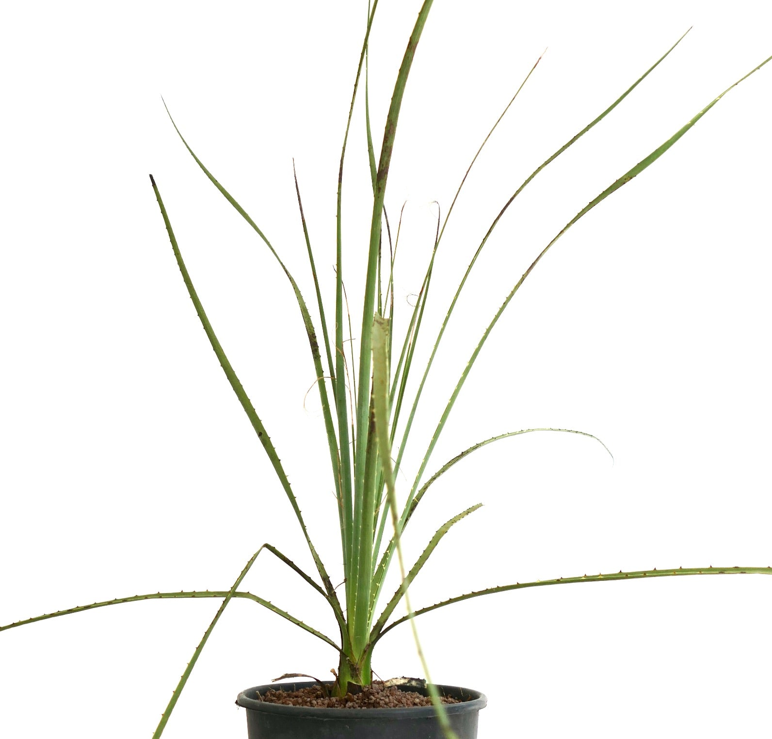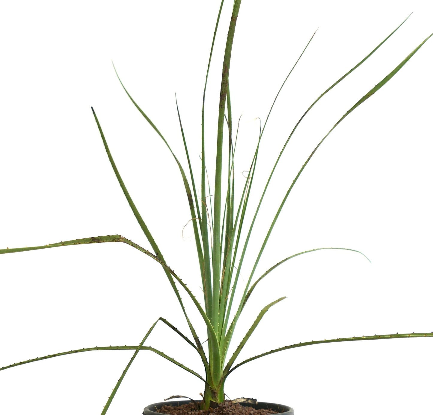 Dasylirion berlandieri is a striking desert plant native to arid regions, admired for its architectural form and resilience. This species features a rosette of long, slender leaves with finely serrated edges, radiating outward in a dramatic, spiky display. Its leaves often have a bluish-green hue that adds a cool contrast to warm desert landscapes. The plant's unique morphology includes a thick, woody stem that supports its impressive foliage, making it a standout specimen in any collection. Known for its adaptability and ornamental appeal, Dasylirion berlandieri embodies the rugged beauty of desert flora. It is highly valued by collectors for its distinctive shape and the subtle textural variation of its leaves. This species belongs to the Dasylirion genus, which is renowned for plants that combine toughness with elegant form, making Dasylirion berlandieri a captivating addition to botanical displays or xeriscape gardens.