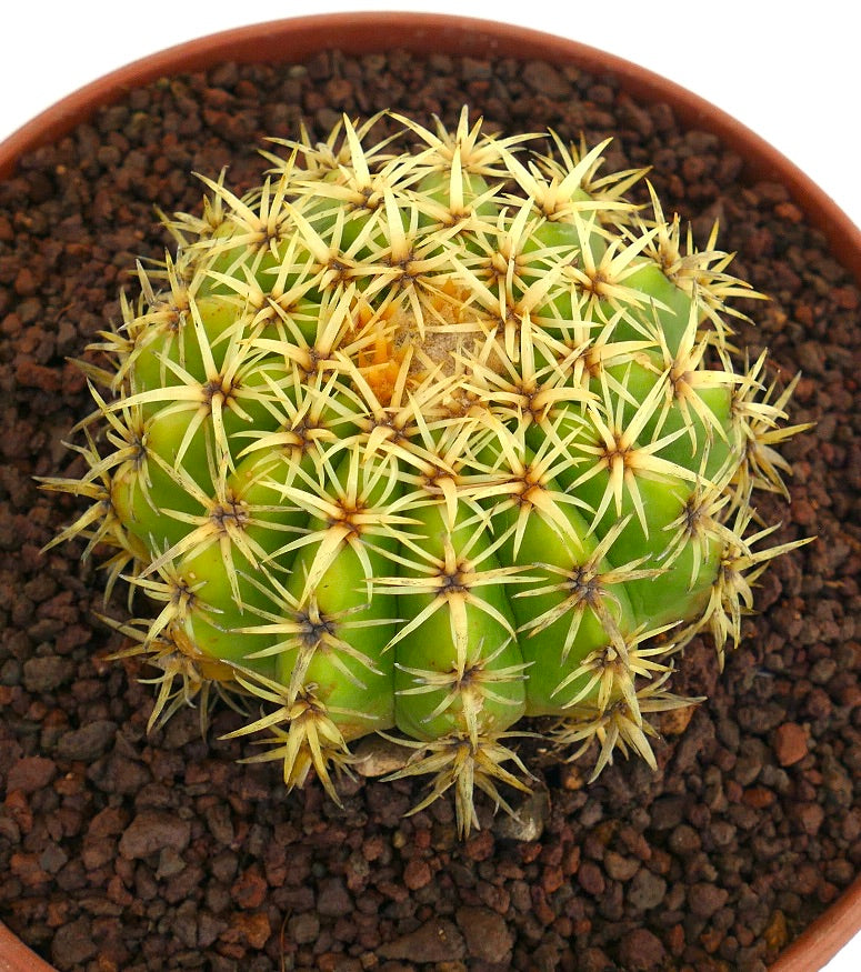 The Echinocactus grusonii form brevispinus is a striking variety of the iconic Golden Barrel Cactus. This rare cactus variety stands out with its notably shorter spines compared to the typical species. Native to Mexico, it boasts a robust spherical shape and a vibrant golden hue that brightens any collection. Gardeners and collectors appreciate its compact and dense appearance, making it a unique specimen.