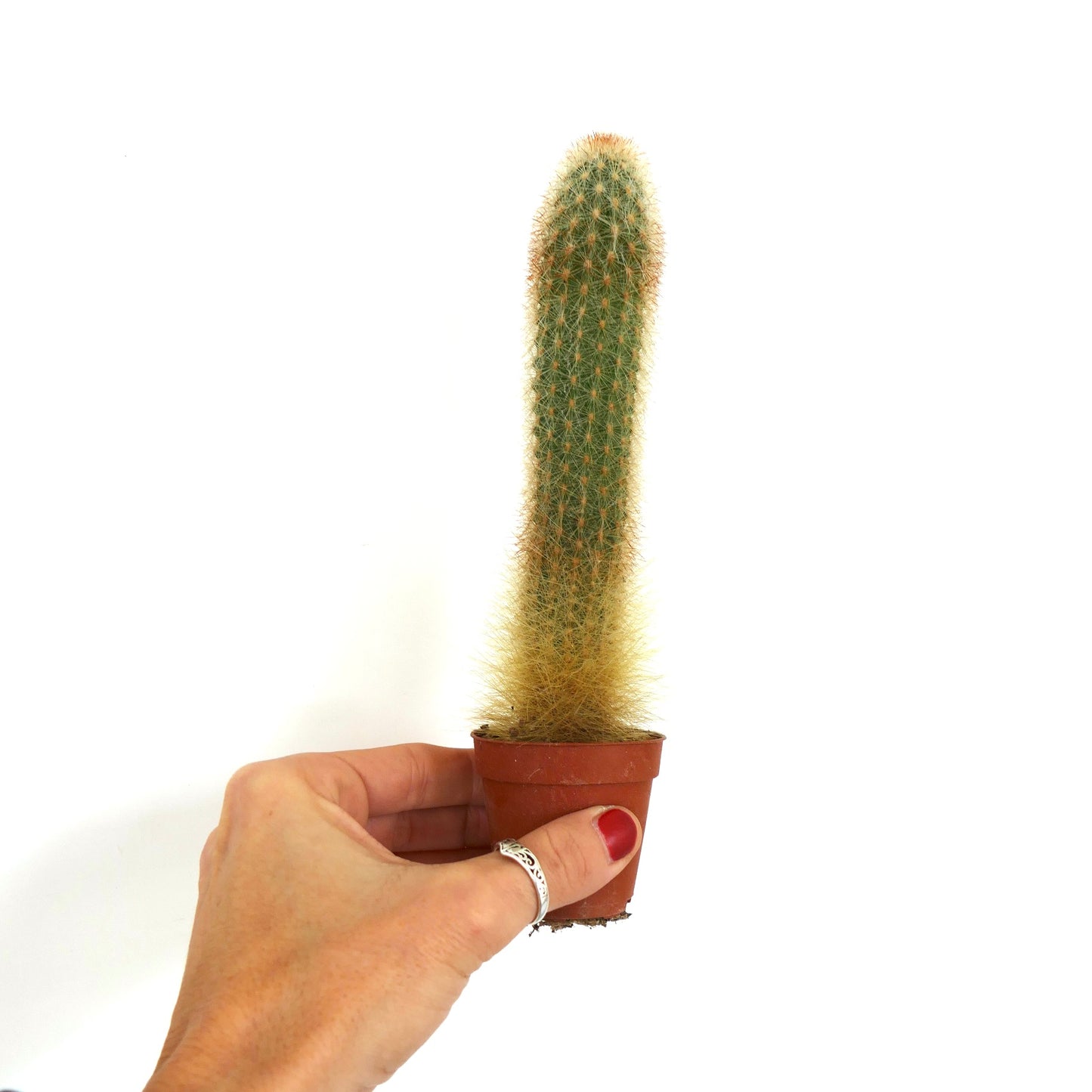 Espostoa blossfeldiorum is a stunning example of the Espostoa genus, known for its distinctive appearance and unique features. This South American cactus originates from Peru, where it thrives in arid environments. Its tall, columnar form stands out with dense, woolly hairs that give it the common name Peruvian Old Man Cactus. The soft white fuzz covers the cactus, providing an almost ethereal look that fascinates collectors and plant enthusiasts alike.