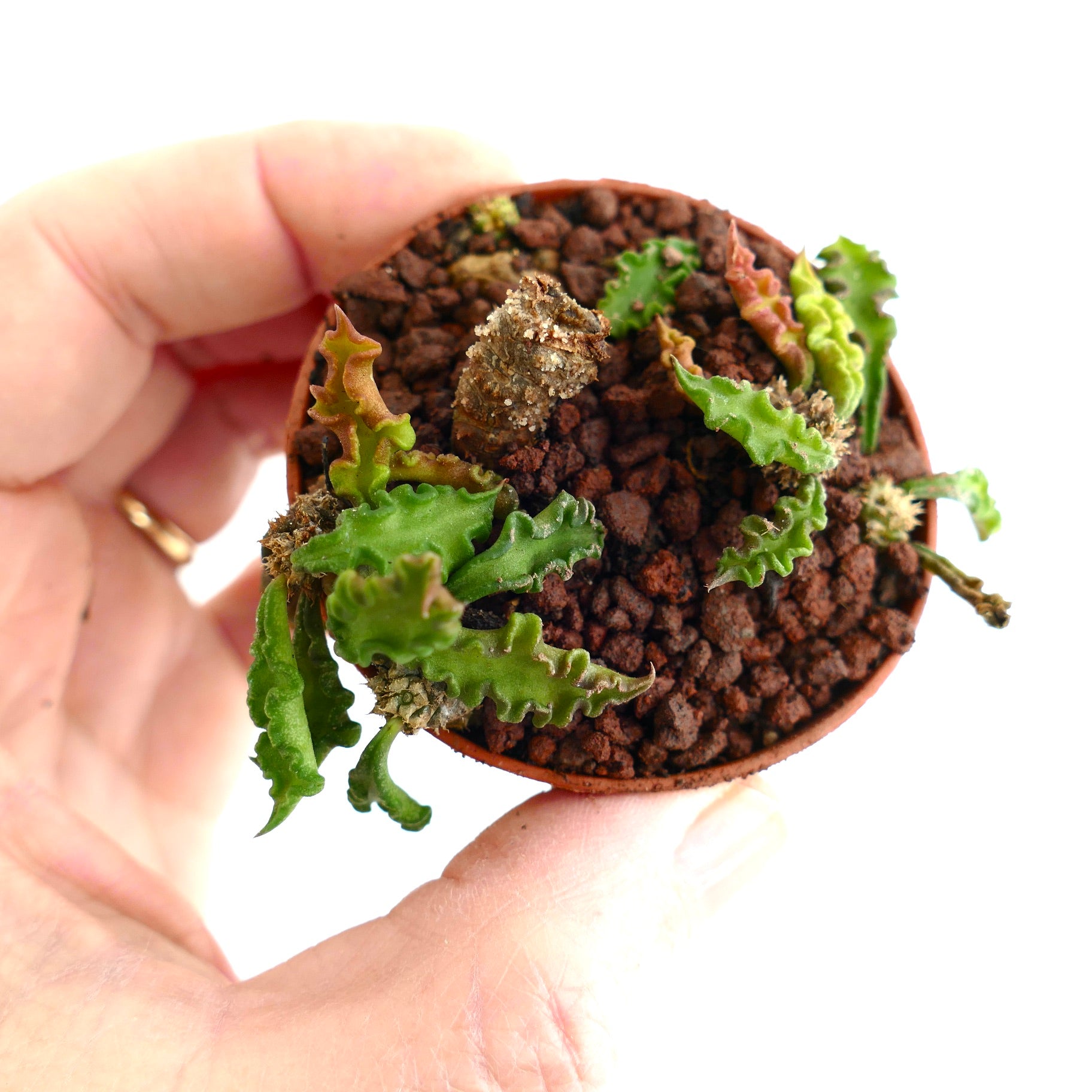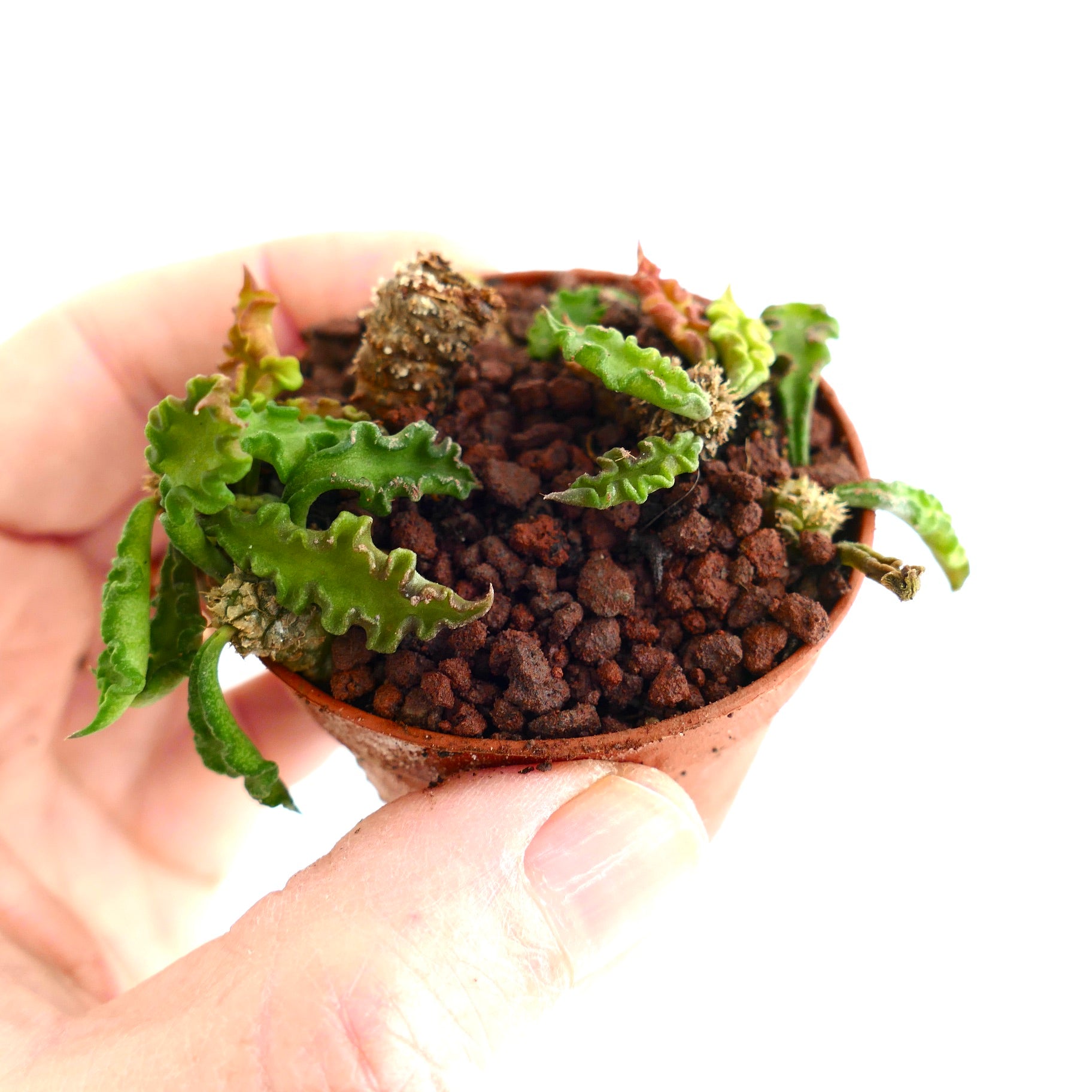 In summary, Euphorbia decaryi offers a fascinating blend of botanical uniqueness and visual charm. This drought tolerant Euphorbia fits perfectly in collections focused on caudiciform Euphorbias or Madagascan succulents. Its rarity and sculptural shape make it a standout specimen. Adding this decary spurge enriches any succulent assortment with both beauty and resilience.