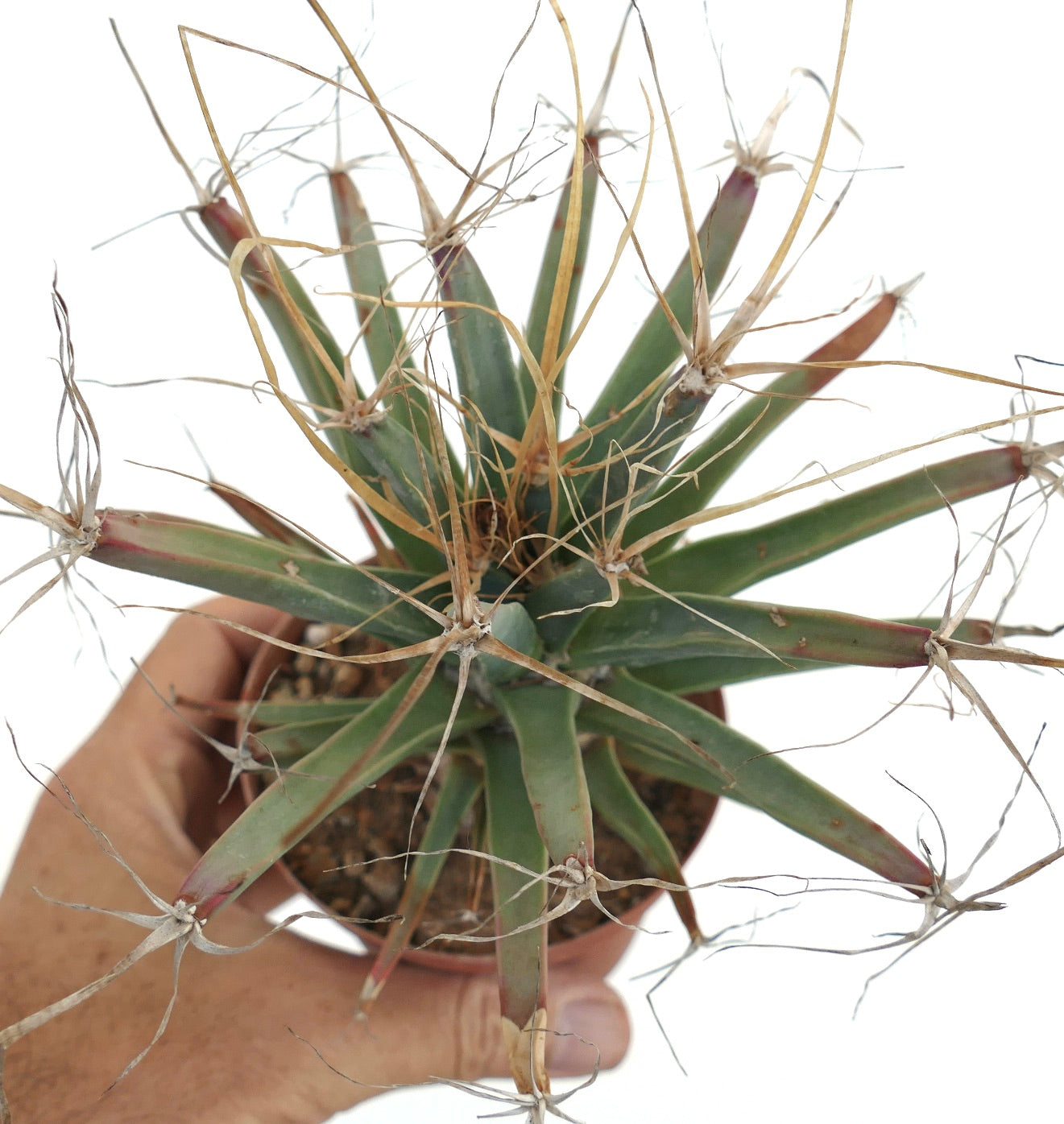 The Old Plant Leuchtenbergia principis shows the mature growth traits of this rare cactus, including thicker tubercles and a more pronounced structure. This cactus is part of the Principis species, which is prized among enthusiasts for its rarity and unique morphology. Its natural origin in Mexico adds to its allure as a collector's Leuchtenbergia with a distinct character.