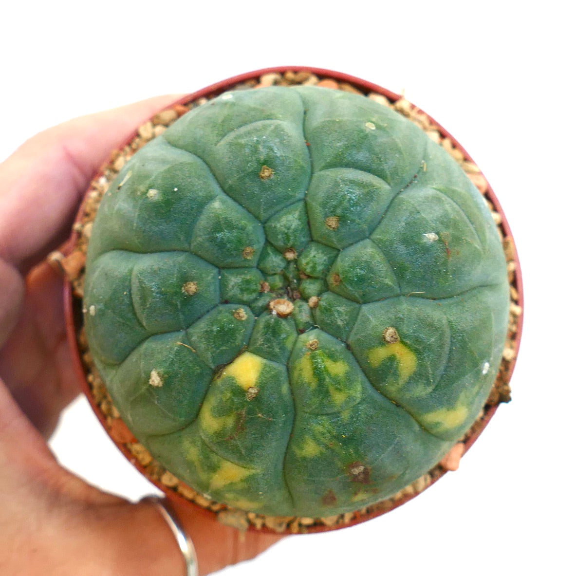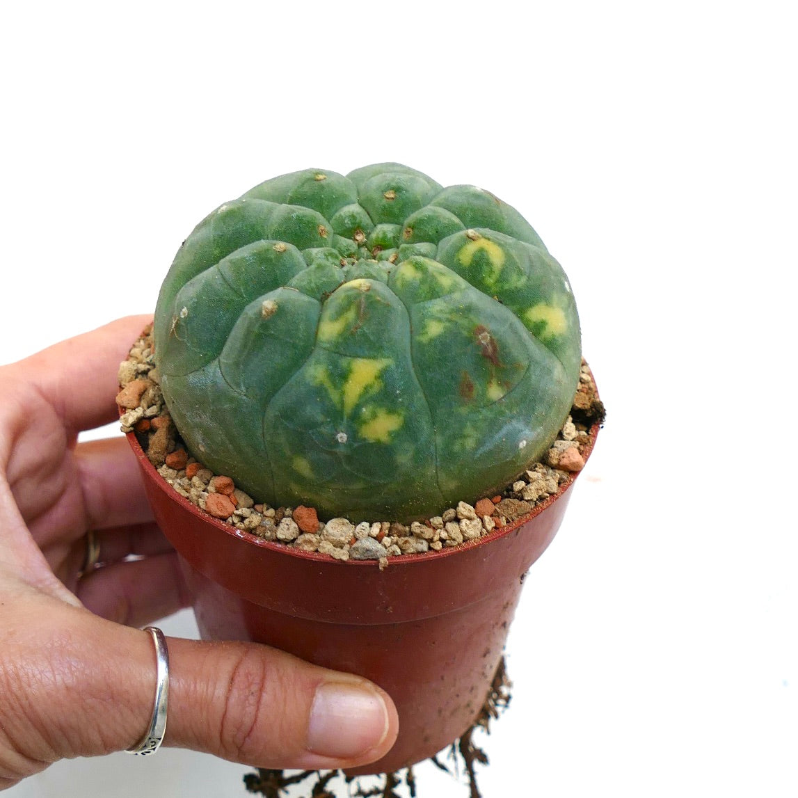 The Matucana madisoniorum variegata is highly prized for its rarity and distinctive coloration. Often called the Madison cactus, it thrives in rocky, mountainous environments and displays thick, spiny ribs that protect it from harsh conditions. The variegation creates an attractive contrast on its surface, drawing attention in any collection. This Peruvian cactus offers a natural artistic touch with its natural mosaic-like appearance.