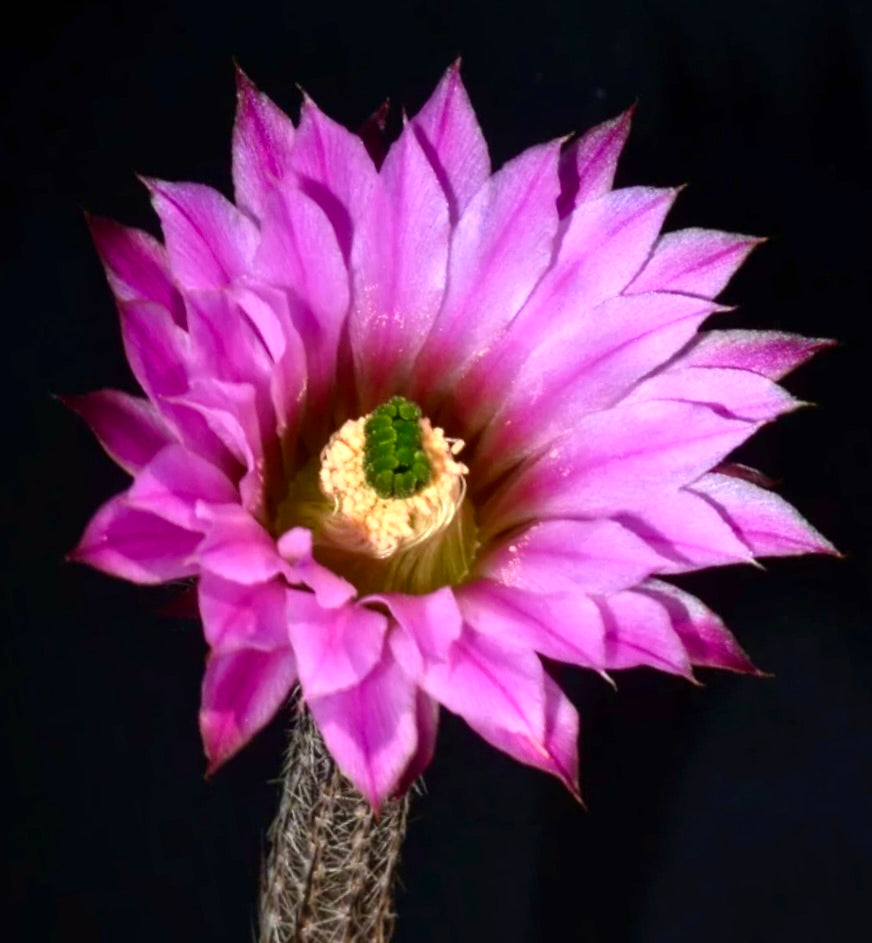 Wilcoxia poselgeri is a captivating cactus species native to Mexico. This Wilcoxia poselgeri species stands out with its distinctive shape and resilience, making it a prized addition to any succulent or desert-themed garden. The mature plant showcases a compact, spiny body covered in small, dense clusters of spines that protect it from harsh sun and herbivores. Its compact size makes it perfect for ornamental displays.