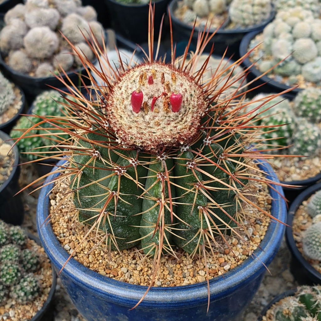 เมโลแคคตัส เออร์เนสที มีลำต้นสีเขียวสดใสเป็นร่องพร้อมตุ่มเด่น เซฟาเลียมผลิตดอกไม้ขนาดเล็กสีสดใส ตามด้วยผลไม้ซึ่งดึงดูดแมลงผสมเกสรในท้องถิ่น ขนาดกะทัดรัดและรูปร่างที่น่าสนใจทำให้เป็นตัวเลือกยอดนิยมสำหรับนักสะสมและผู้หลงใหลกระบองเพชรที่ชื่นชอบสกุล เมโลแคคตัส สายพันธุ์นี้เพิ่มความน่าสนใจทางพฤกษศาสตร์และความงามตามธรรมชาติให้กับคอลเลกชันใด ๆ